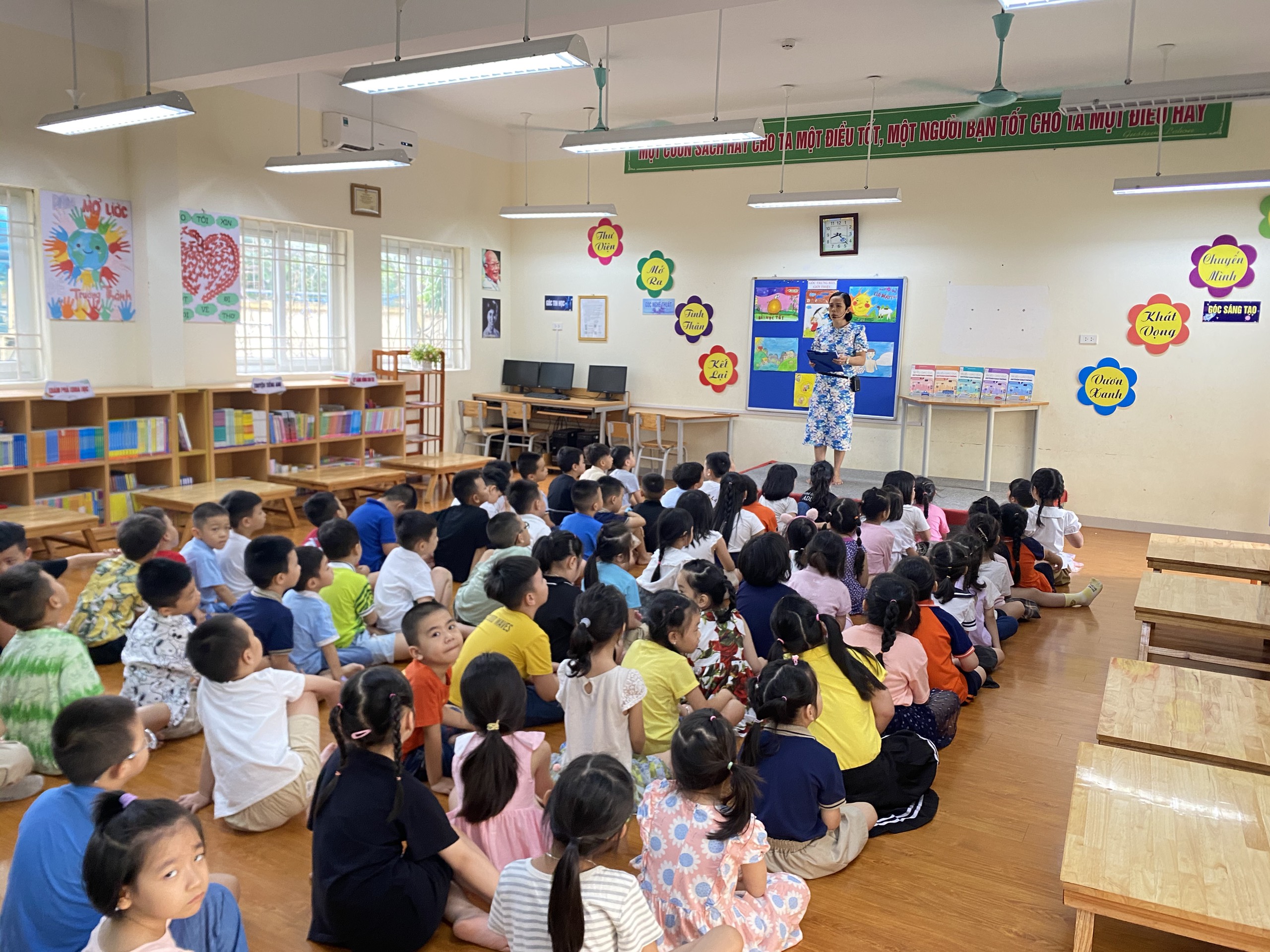 Hoạt động thư viện kết hợp với tiết Tiếng việt - đọc mở rộng của Lớp 2A5 tiết 1 buổi sáng và lớp 2A4 tiết 1 buổi chiều